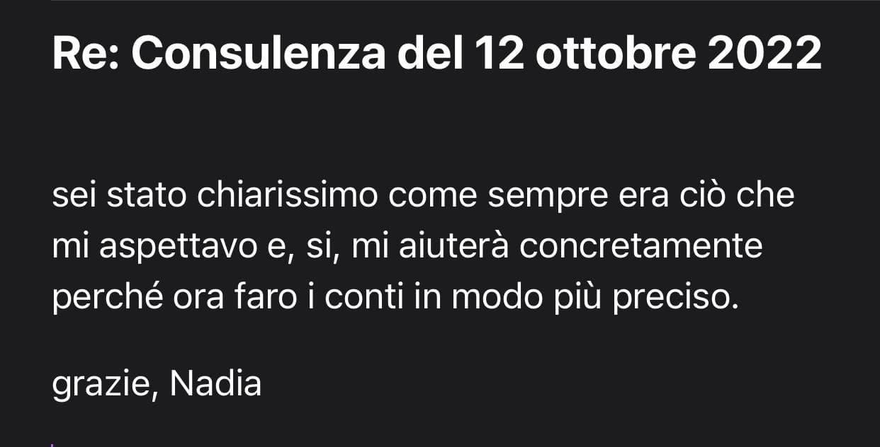 Se devi fare qualche investimento importante, inoltre, potremo fare alcune simulazioni su come cambierebbero il numero di clienti necessarie e il loro incasso per coprire le tue maggiori spese.