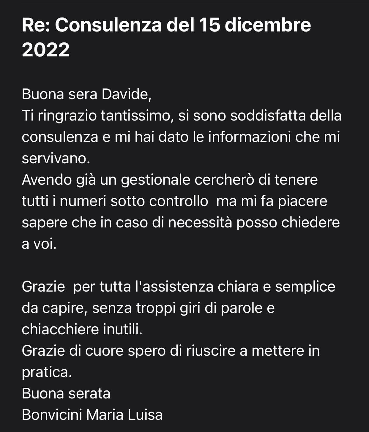 Se conosci Davide sai bene che lo ha sempre contraddistinto una grande serietà, e soprattutto la certezza di far ottenere un risultato estremamente utile ad ogni Consulenza.