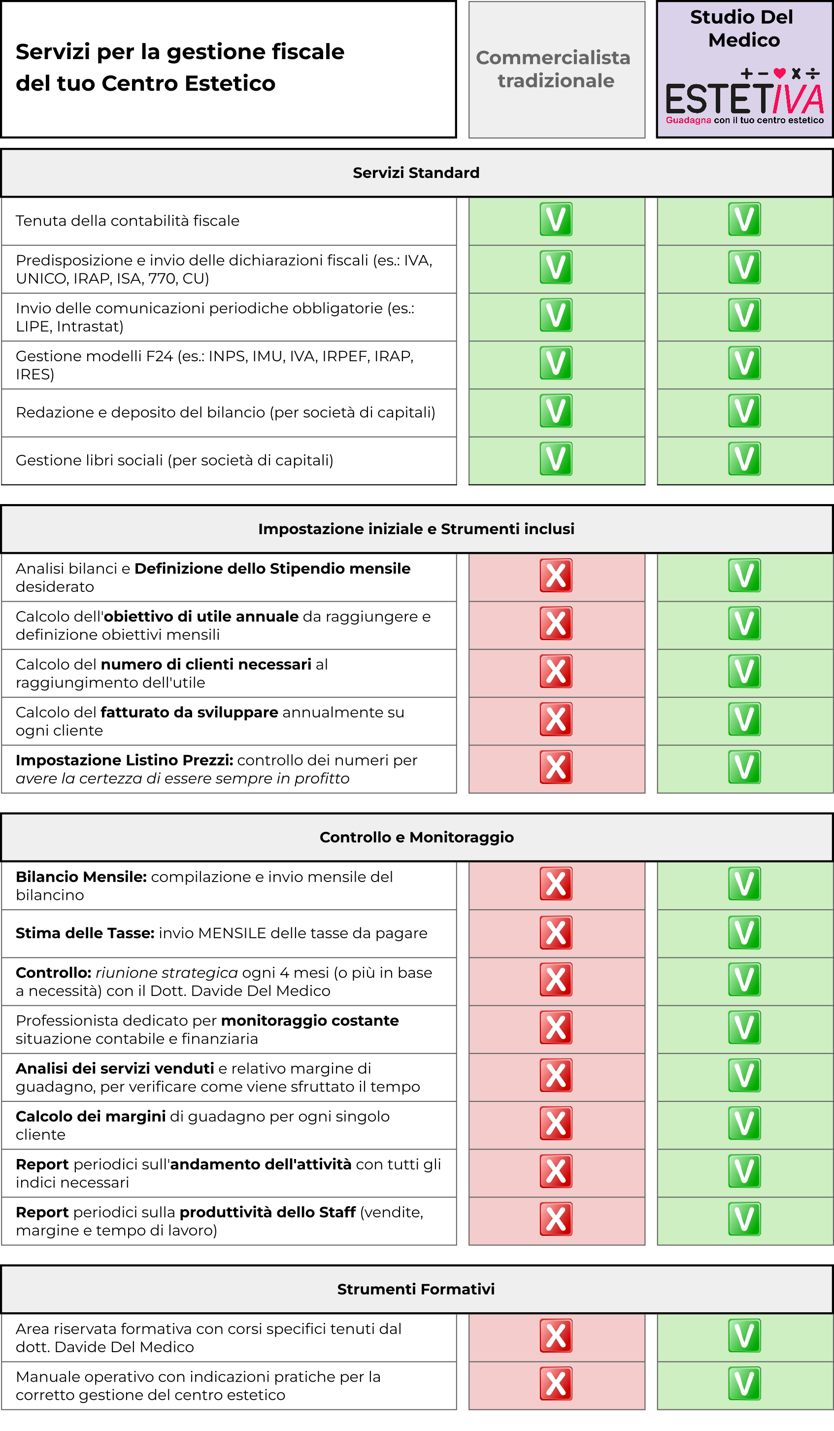 ➡️ Tutta la burocrazia fiscale del tuo centro gestita in modo professionale: contabilità, dichiarazioni e adempimenti fiscali per Centri Estetici di tutta Italia.
