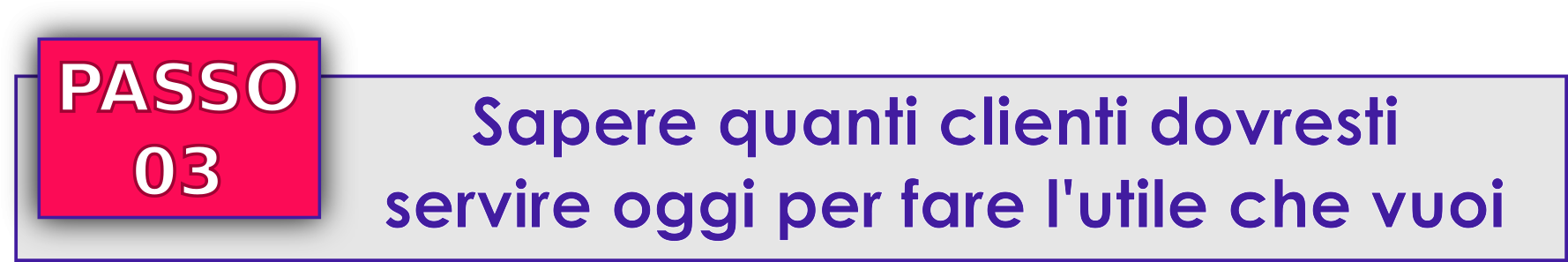 Quello che ancora non sai, probabilmente, è che c’è un modo preciso per calcolare quanto devi guadagnare - ALMENO - con il tuo centro estetico. C’è un importo in euro ben preciso che devi fare, come MINIMO. In questi 2 giorni riuscirai a calcolarlo.